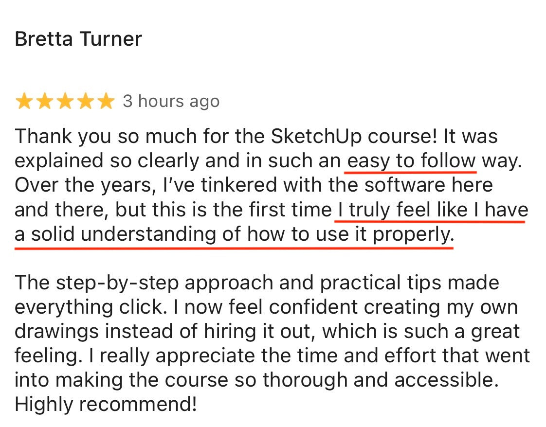 Here’s a very small collection of the nice things people have said along with some of the projects students have completed in my SketchUp courses.