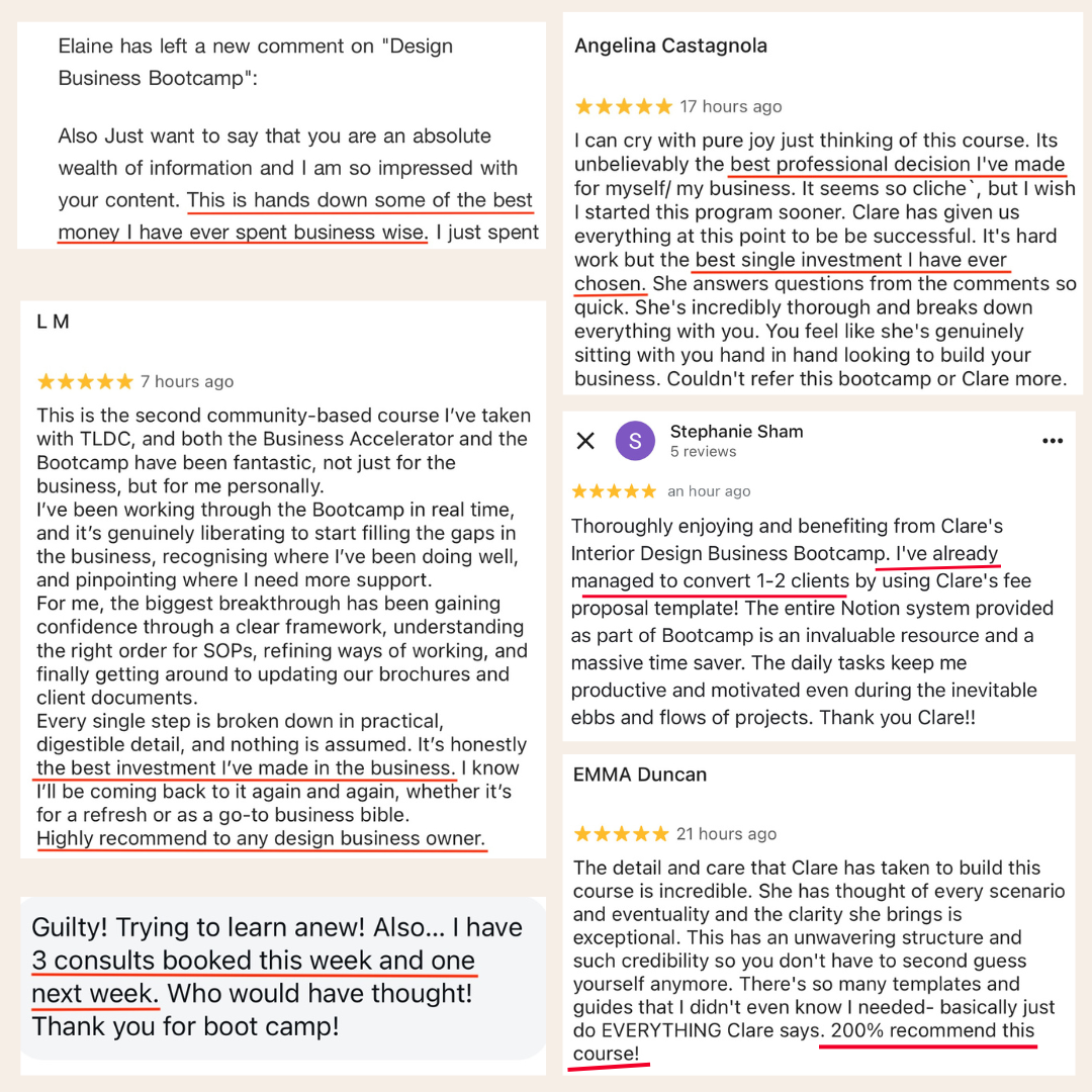And all you need is just ONE new client from what you learn in Bootcamp and the program more than pays for itself.